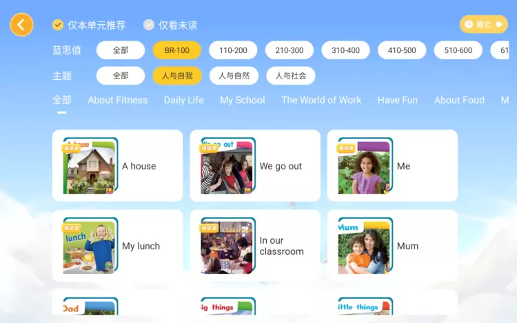 同时,扶小鹰把这些绘本根据蓝思值(阅读难度)细分成256个级别,孩子在首次使用时,需要先做一个定级测评。定级测评是根据剑桥通用5级考试体系和国内英语新课标要求来设计的。孩子在做完测评后,系统会根据测评结果,给孩子匹配合适的阅读等级。