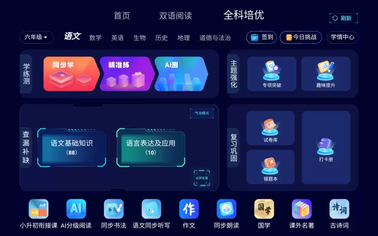不论是语言能力启蒙与拔高,还是预习复习、模拟考试、AI诊断学情,都可以用扶小鹰。