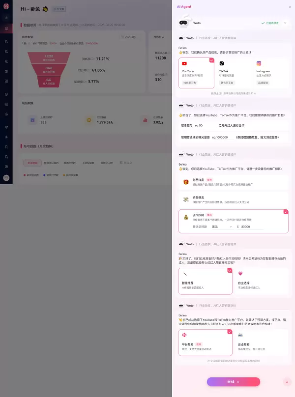 作为市占率第一的海外红人营销SaaS先锋,WotoHub摒弃行业内炒作AI概念的噱头,聚焦可感知、可衡量的效率提升,完成核心的功能革新,让用户真正体验到“AI所用即所得”。