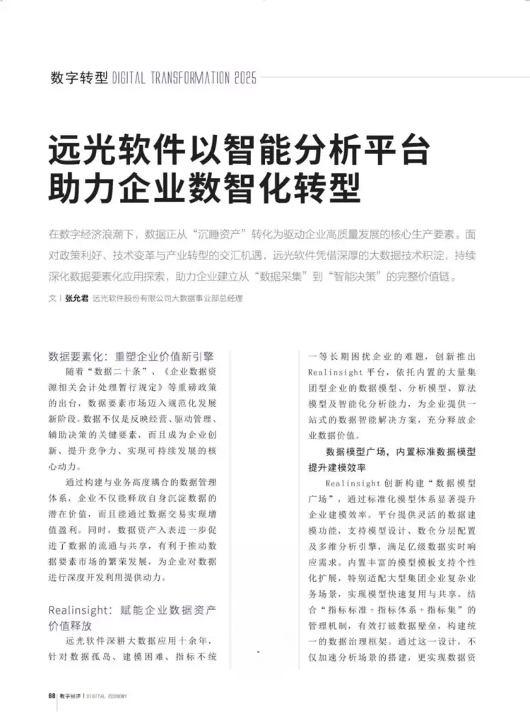 - 《数字经济》远光软件以智能分析平台助力企业数智化转型