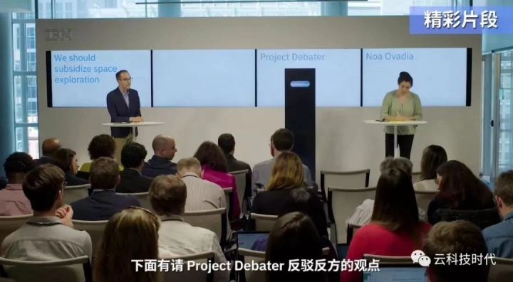 Debater是由IBM Research开发的AI技术集成项目,该项目由IBM研究院以色列海法实验室于2011年提出。与传统辩论相同,Debater与人类辩手各有4分钟陈述自己论点,4分钟反驳对方论点,2分钟总结陈词。