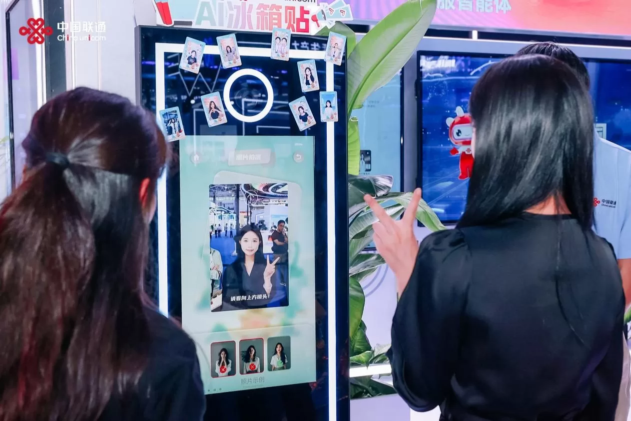 在展会现场,中国联通展示的“智衣衿”文创智能体、AI冰箱贴等互动应用引起了广大观众的驻足观看。通过“元景万悟”智能体开发平台快速生成的这些创意应用,不仅生动展现了联通大模型的多模态生成能力,更让现场观众直观体验到人工智能技术的魅力与便捷。体验区排起了长队,大家纷纷尝试通过AI生成个性化诗词、设计专属文创图案。