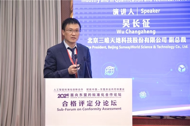 在全球产业格局被人工智能深刻重塑的时代,掌握AI标准化前沿,即意味着掌握未来发展的话语权与主动权。作为国际贸易流通的强劲引擎与产业转型升级的核心驱动力,标准化建设正迎来前所未有的战略机遇。三维天地副总裁吴长征在论坛演讲中强调,各方亟需深化协作,共同推进检验检测与合格评定标准的国际化进程,显著提升中国标准的全球影响力。