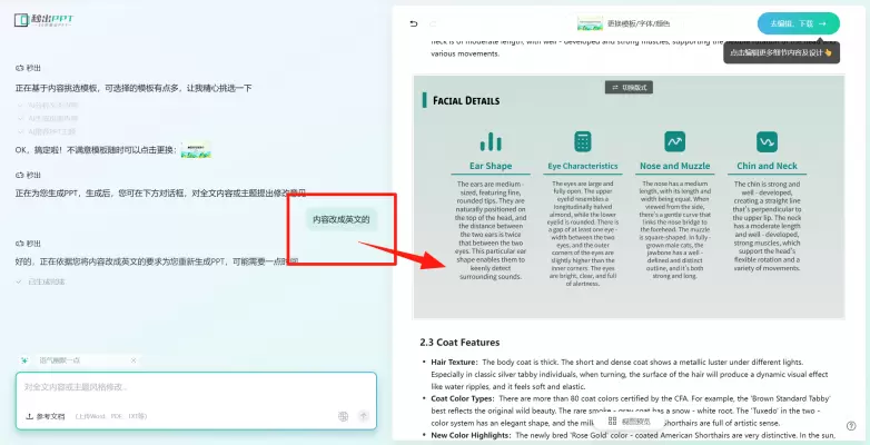 生成的PPT大纲不能直接修改,而是要与ai对话修改,但是ai并不能完全明白我的心意。