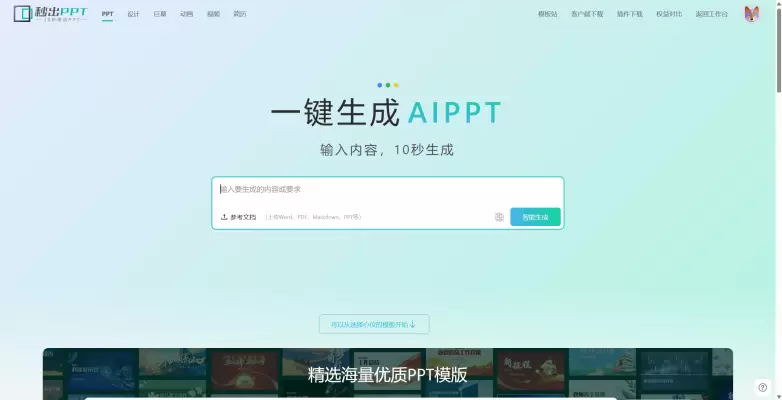 秒出PPT是专注于PPT制作的网站,并且在不断地优化产品,功能也很齐全:一键生成、上传PPT生成、链接生成以及输入生成都是支持的。