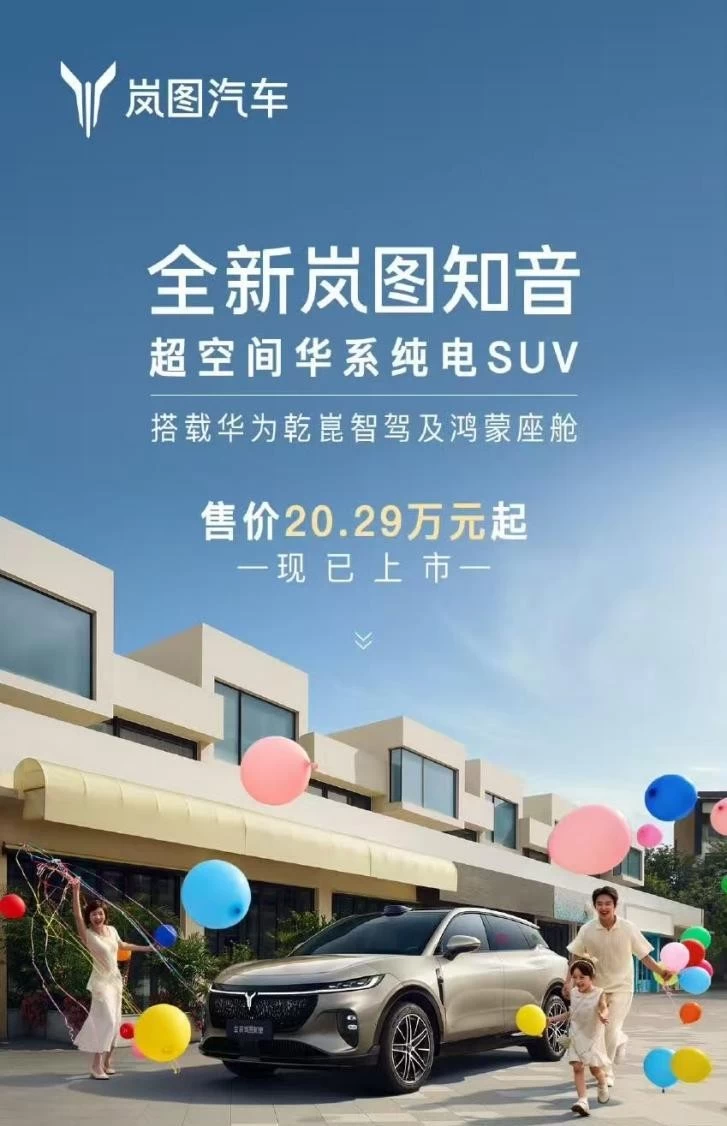 全新岚图知音上市,搭载乾崑智驾ADS 4和鸿蒙座舱5,树立华系家用纯电SUV标杆