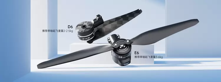 超强力效,长效稳定,兼容开源生态和思翼混源开放生态,这款E6动力系统具有广泛的应用场景。其适合轴距大于等于900mm,单轴起飞重量6kg以下的大部分行业机型,如植保无人机、教培无人机、行业无人机等。