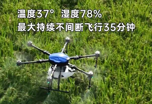 以植保无人机作业场景为例,采用EFT六轴植保机架,搭载10L农药,在37°温度、78%湿度的条件下,以4.5m/s飞行速度、2-2.5m/s高度,3.5-4m喷幅宽度,设置喷施量为1.5L/亩,可持续飞行作业35min,实现21.3亩水稻病虫害防治农药喷洒。单机作业效率大约20亩/小时,大幅提升植保作业效率。