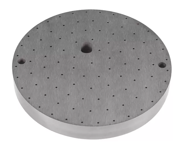 喷淋盘是芯片制造设备刻蚀机的核心部件之一。在 CVD碳化硅喷淋盘的加工中,D1.0/D0.5mm阶梯孔的加工任务更是极具挑战性,其工件硬度高达HV3,150,加工孔径小,钻削加工难度大,对加工精度和稳定性要求极高。目前,高精度碳化硅喷淋盘仍需要依赖国外进口,加工周期漫长、成本居高不下。