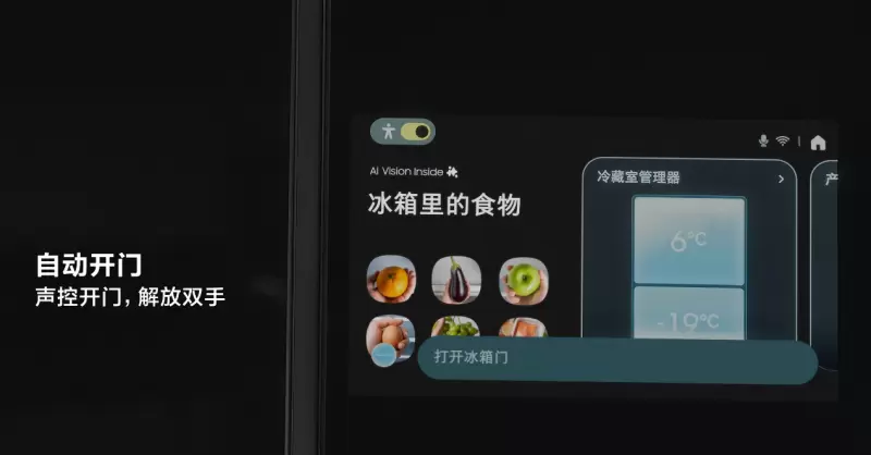 创新的AI食材识别功能让食材管理变得智能化。通过内置高清摄像头,冰箱可以自动识别37种食材,无论是新鲜的果蔬还是优质的蛋白质,都能快速记录在系统中,并在食材临近保质期时主动提醒,有效减少了食材过期的危害。