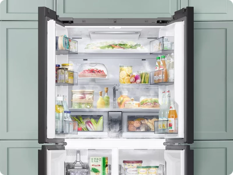 食材的保鲜质量直接关系到家人的健康。三星AI神 冰箱9系采用创新的AI混合制冷技术,实现±0.5℃的精准温控。这项技术确保了食材始终处于最佳储存环境,最大限度保留营养成分。