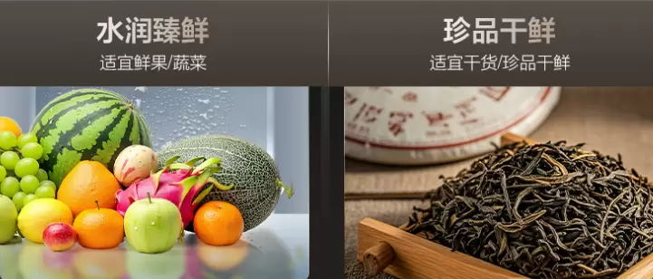 冰箱内部采用精细化的分区储藏设计,完美践行“干湿分储”的理念。珍品干鲜储藏区可有效降低湿度,做到干而不燥,保留干货食材的原始风味;水润臻鲜区提供田园级养鲜环境,让蔬果始终水润脆嫩。这种智慧空间规划不仅让食材存储井然有序,更能避免交叉串味,确保每类食材都在最适宜的环境中保持最佳状态。