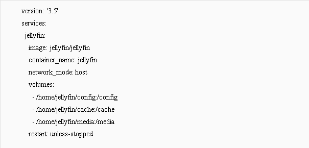 首先创建一个目录用于存放Jellyfin的数据,并且编写 docker-compose.yml 文件来配置Jellyfin服务。