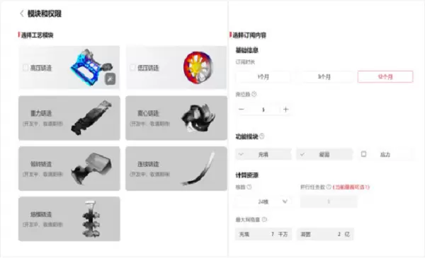 智铸超云3.0版本支持用户在开始仿真前选择要输出的结果类型和工艺参数,避免了无效参数录入,并增加工艺节拍示意图等,让仿真流程与实际工艺更加贴合,也让新用户能够更快上手;同时,支持用户自定义工艺流程、自定义配置订阅方案,无论是小团队还是大客户都可按自身需求定制化部署,灵活度更高。