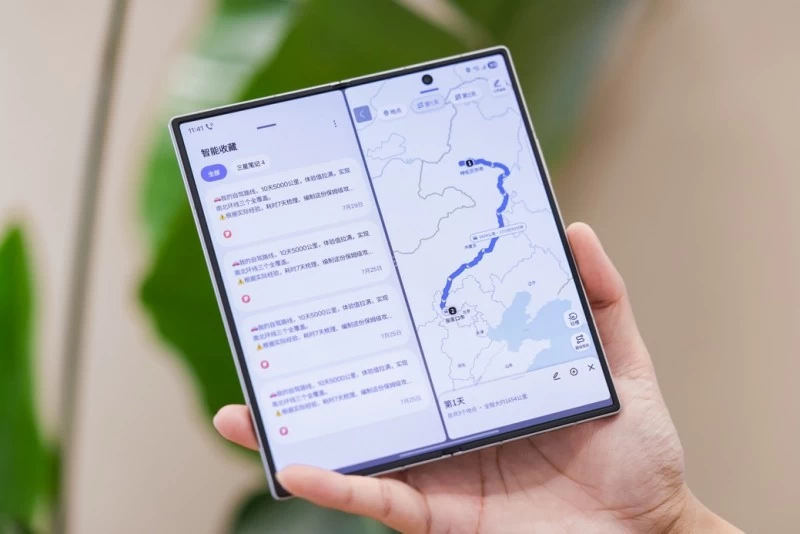 以Galaxy Z Fold7为例,智能收藏可识别三星笔记中的目的地与时间信息,并与地图应用联动自动生成可视化行程,细化到每日路线;在分屏视图下,地图、日程与参考资料并行呈现,规划链路一气呵成。Galaxy Z Flip7的更大外屏则让用户在不展开手机的情况下,即可查看即时简报和音乐播放、录音以及外卖进度等实时任务处理,减少干扰、提升响应速度。