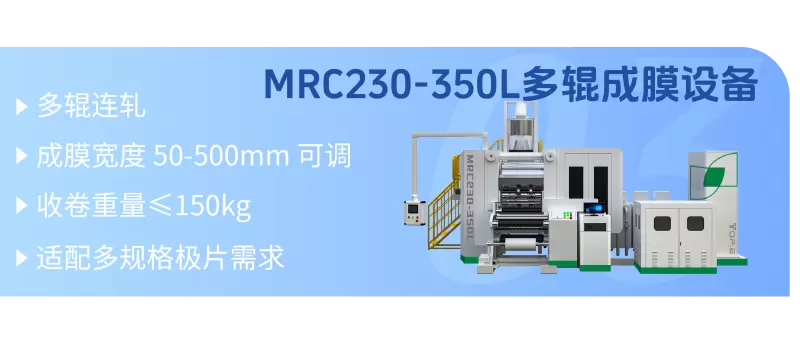 设备精度:多辊机成膜厚度 ±2μm、收卷整齐度 ±0.5mm,确保极片尺寸一致性,为下游电池组装提供稳定基材。