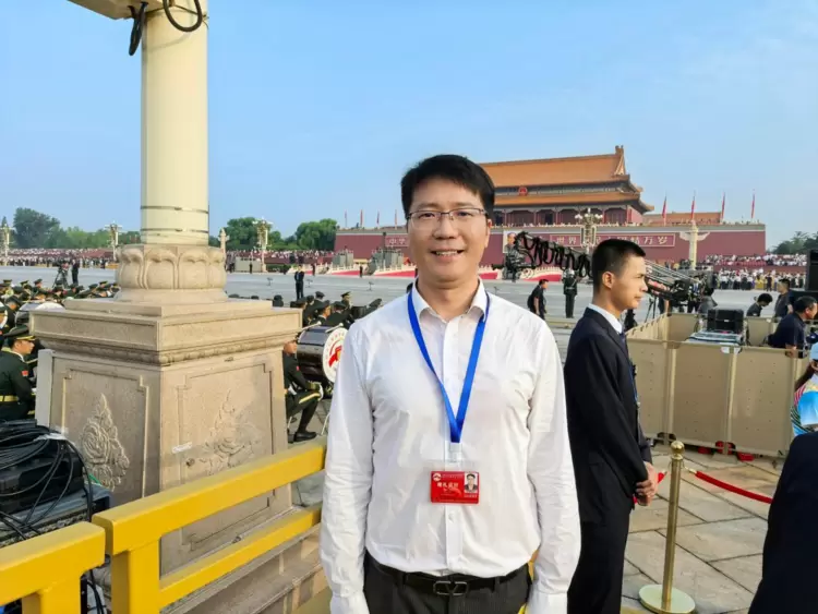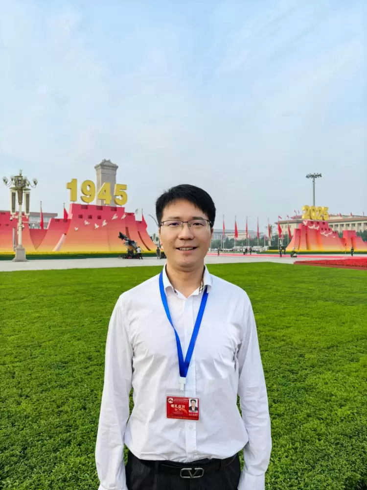 当五星红旗冉冉升起,当雄壮的国歌响彻广场,当承载着历史记忆的战旗方阵昂首通过检阅台,当彰显大国实力的钢铁洪流滚滚向前,袁军老师心潮澎湃、热泪盈眶。“这不仅是一场展现国家实力的盛典,更是一次深刻的精神洗礼。”他在观礼后动情地说,“80 年前,无数革命先烈以血肉之躯筑起抵御外侮的长城,用牺牲与奉献换来了民族独立与人民解放;80 年后的今天,我们站在天安门广场见证祖国的强盛,也更加坚定了‘强国必须有我’的责任担当。作为新时代的企业经营者,我们必须接过先辈手中的‘接力棒’,把伟大抗战精神融入企业发展的血脉,以实际行动为国家富强、民族复兴添砖加瓦。”