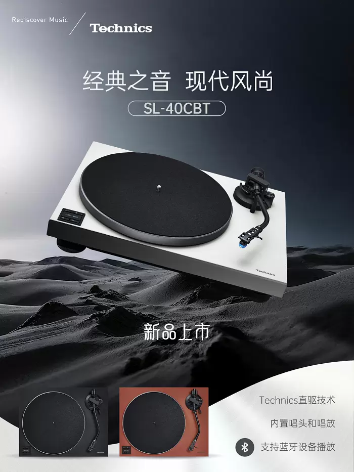 Technics 已成为 DJ 和HIFI市场高端品质唱盘的代名词。为不断满足客户需求,Technics 决定突破传统唱盘的设计,将经典特性——精密可靠的无芯直驱电机与全新的视觉外观相结合,以吸引更多的黑胶音乐爱好者。Technics 将通过SL-40C/40CBT这一产品,进一步满足那些刚开始黑胶唱片之旅、同时希望获得能够提供HIFI音质的音乐爱好者。