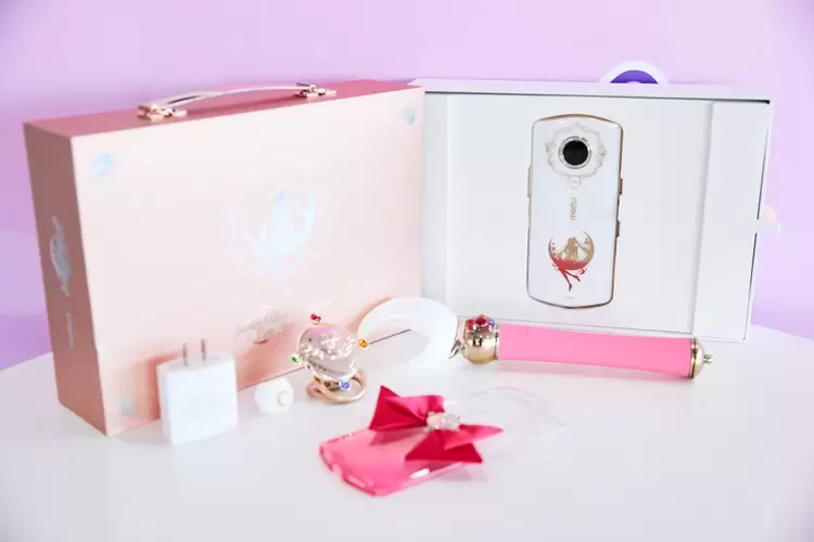 除了手机上的精致设计,美图T9美少女战士限量版的配件也独具匠心,第三代月光自拍杆、月棱镜补光灯及保护壳、1:1真实还原了美少女战士的经典新月棒及月棱镜等经典武器外形,仿佛任何一件周边都可穿梭进美少女战士的世界。