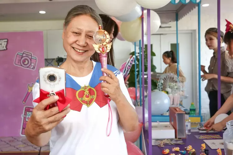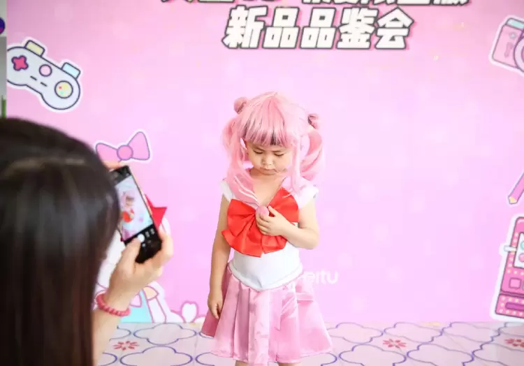 颇有意思的是,现场来了一位妈妈居然把小正太儿子打扮成小小兔来参加新品品鉴会,此外还有一位美图手机的奶奶粉穿着美战主题的衣服陪孙女参加,看来不论“男女老少”都已经被精美的美图T9美少女战士限量版种草了。