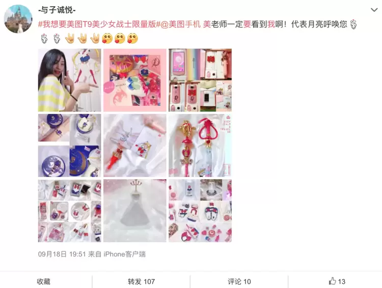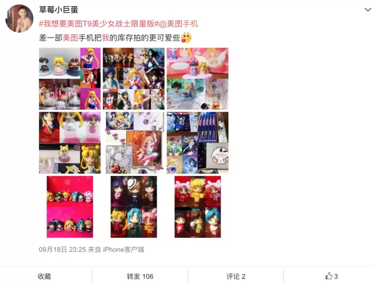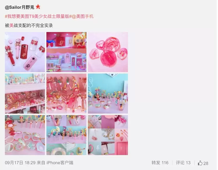 美图手机此前曾在微博发起#我想要美图T9美少女战士限量版#的话题活动,只要晒出拍摄含有美少女战士元素的照片或视频,就有机会得到全球前10台尚未面世的美图T9美少女战士限量版,活动一上线就受到大批美战粉的热情参与,短时间内话题阅读关注度就超百万,可见人气之高。