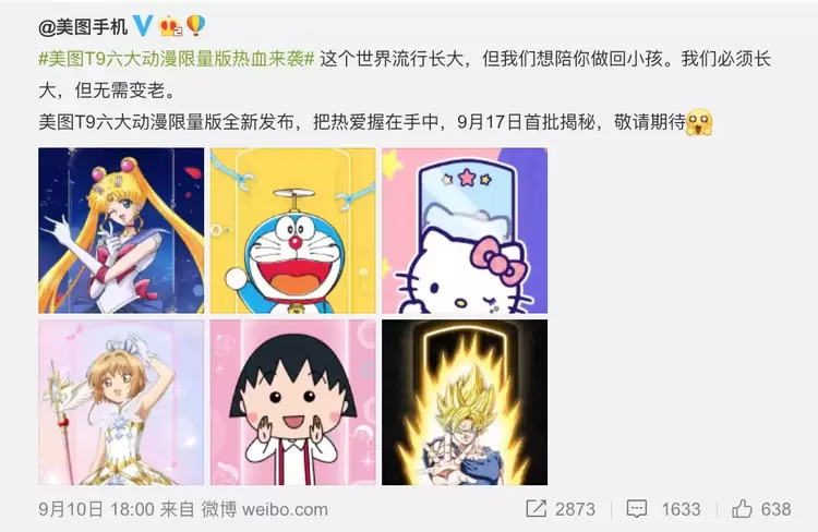 从美图T9动漫限量版可以看出,美图手机尽管身处“千机一面”的手机市场,美图手机始终保持着个性独特的“双V”造型,不跟风的设计也让其极具辨识度。同时,美图手机在外观设计上也是下足了功夫,从M系列的玻璃到T系列的金属再到V系列的奢侈品级小牛皮,背盖材质的多样化也体现了其创新突破的尝试;而在手机外观配色上,美图手机也走在潮流前沿,此前多次与Hello Kitty、美少女战士、七龙珠、哆啦A梦、大英博物馆等世界顶级IP合作推出限量版手机,新品美图T9继与北京皇家园林颐和园推出限量版后,再次推出Hello Kitty、美少女战士、七龙珠、哆啦A梦、樱桃小丸子及魔卡少女樱六款动漫限量版,一经曝光就备受关注。