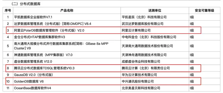 目前拿到XC认证、在MySQL替代上有竞争力的厂商,屈指可数:阿里的PolarDB-X、中兴的GoldenDB、腾讯云的TDSQL,还有这两年被不少人关注的“专注MySQL替代”的万里数据库。