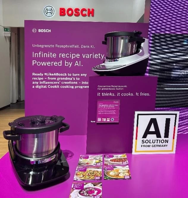 博世家电同样让人工智能(AI)融入日常生活场景,例如膳食规划:当用户在互联网中搜寻新菜谱时,可通过博世Cookit智能烹饪机全新推出的“AI食谱转换”功能,将网络食谱直接发送至设备并进行自动烹饪。该功能利用AI将食谱转换为引导式操作流程,自动识别所需配件、烹饪时间等关键参数。8系列烤箱的AI功能也进一步升级,现可识别多达100种菜肴——用户只需放入食材,烤箱便会自动推荐最优烹饪模式。