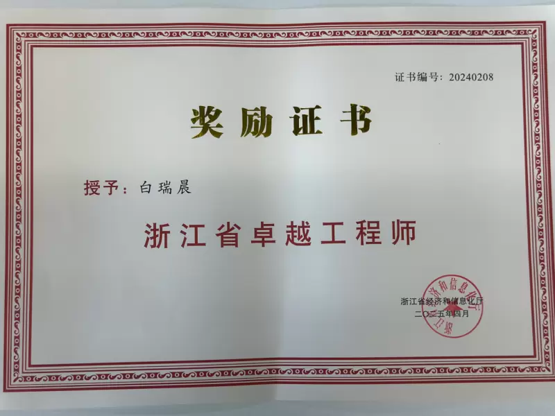 近期,白瑞晨还获得了“浙江省卓越工程师”称号,该称号是浙江省围绕产业创新发展和企业实际需要,重点面向“数字工程技术、先进制造技术、前沿工程技术”三大培养方向遴选产生的重要荣誉。这一荣誉不仅是对白瑞晨个人技术成就的肯定,也是对兰洋科技在人才体系建设和产业创新成果方面的充分认可。