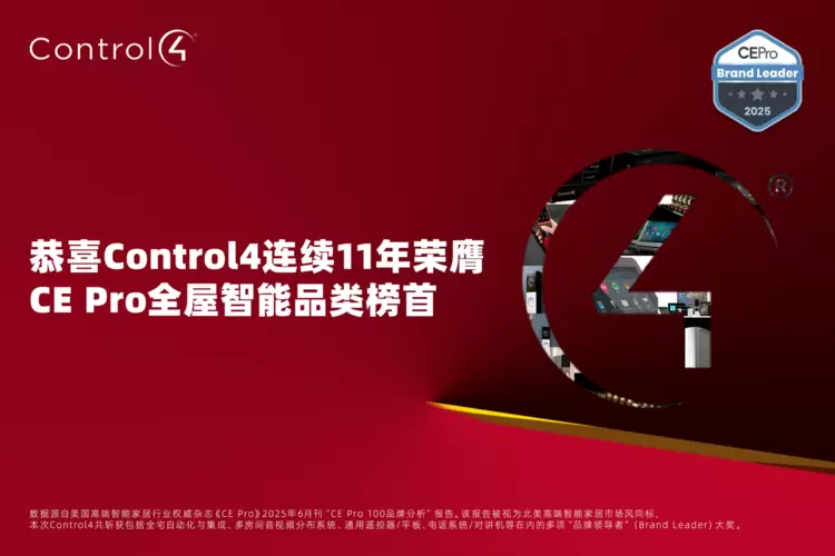 - Control4连续十一年蝉联CE Pro全屋智能系统榜首,持续定义行业标杆