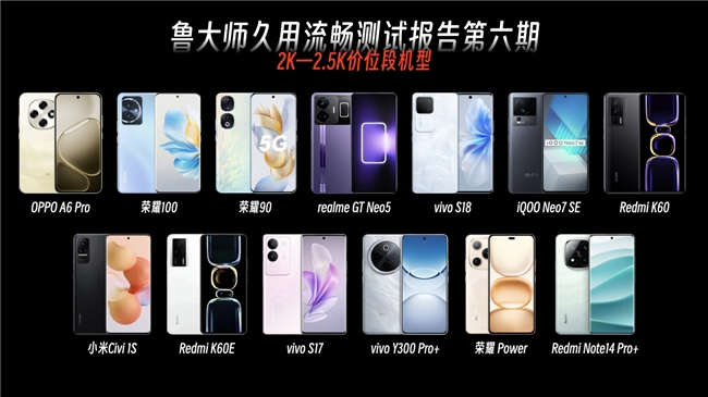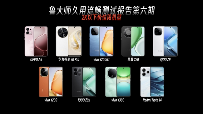 为什么OPPO A6/A6 Pro能分别斩获2K以下、2K-2.5K价位段久用流畅冠军?这就得用实测数据来印证了。机型选择方面,鲁大师此次挑选出2K以下价位段共9台,2K-2.5K价位段共13台机型分别测试。
