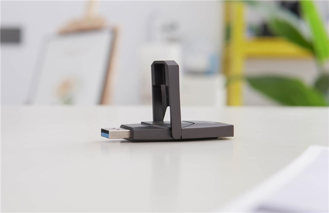 这个坚固的盖子可以有效保护U盘的接口,而且防止磨损刮擦,USB-C口那一侧盖子上还有挂绳位,可以把US5挂到别的东西上 ,例如书包、背包等。对了,单侧盖子最大可以翻开90°,体积也是十分小巧精致。