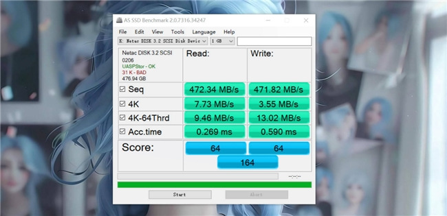 朗科US5在笔记本的USB 3.2接口上展现了卓越的峰值性能,在AS SSD Benchmark测试软件上显示其读取速度高达472.34MB/s,写入速度亦达到471.82MB/s,与官方数据相吻合,实际性能表现令人印象深刻,实际上的传输速度表现出色且稳定可靠,对于我这种经常有视频素材经常要传输来传输去的小伙伴来说,朗科US5可以大幅度节省我的时间,提高工作效率。