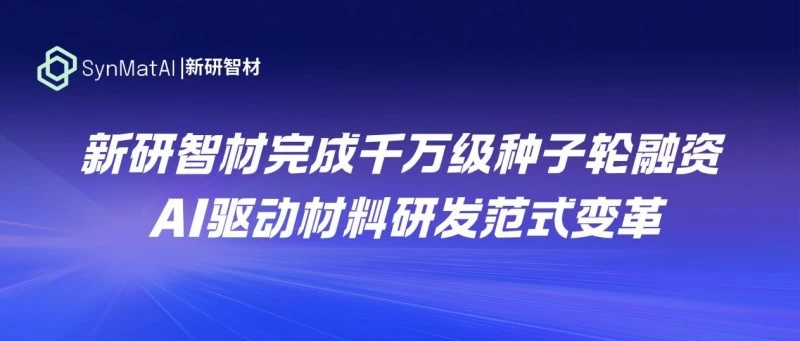 - 新研智材完成千万级种子轮融资,材料研发在AI技术加持下发生范式变革