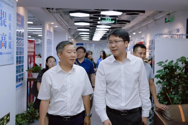 在袁军老师的陪同下,施进军副社长一行先后参观了菜鸟无忧集团总部及北京新媒体中心,沉浸式体验 “科技赋能 + 专业服务” 融合的就业服务全流程。