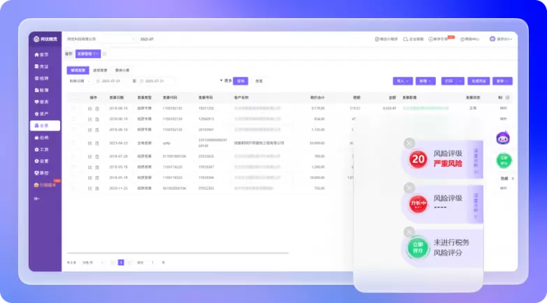 阿优精灵的税务360安全卫士功能,深度融合了金税四期的监管逻辑,能为企业提供全方位的税务风险防护: