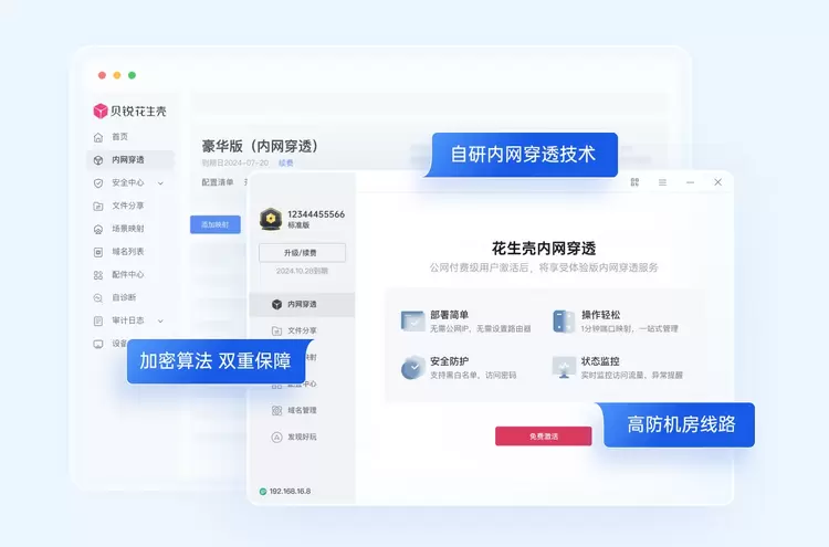 贝锐花生壳提供多层级的访问控制功能,可精确设定远程访问的权限和条件。例如:只有在特定时间段、特定IP或区域范围内,才能登录访问某一映射。对于Web监控页面,还可增加访问密码验证,并限定仅允许特定浏览器或操作系统访问,杜绝未经授权的登录。系统亦内置多维度状态监控,通过短信、邮件等多渠道告警通知异常情况,确保运维人员及时获知并处理异常,构筑严密的安全防线。