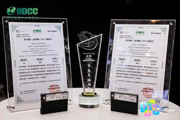 [中国,北京,2025年9月11日] 在以“拥抱AI变革,点燃算网引擎”为主题的2025开放数据中心大会(简称“ODCC”)举办期间,华为主导的“大容量SSD技术要求及评价指标”标准荣获ODCC 2025年度卓越成果奖,华为OceanDisk 116P和OceanDisk 300P获得中国信息通信研究院颁发的算力强基·企业级SSD卓越产品称号。