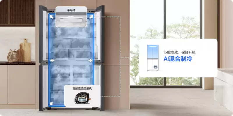 三星AI神 冰箱9系将先进制冷科技与AI智能深度融合,获得了国家一级能效认证,在保障饮食健康的同时做到高效节能。它搭载的“AI混合制冷技术”融合半导体制冷模块和智能变频压缩机,通过高级算法与AI传感器实时感知内外温度变化,精准控制制冷功率,在实现节能高效的同时提升食材保鲜效果。无论是炎热的夏季厨房,还是突然放入一锅热腾腾的汤品,三星AI神 冰箱9系都能智能响应快速降温,减少温度波动,不仅保证了食物的新鲜度,还避免压缩机长时间超负荷运转。
