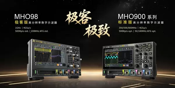 2025年9月8日,普源精电(RIGOL)“超便携家族”再添重磅成员——MHO900系列超便携高分辨率示波器正式亮相。此次发布以“以极致回馈极客”为核心,不仅推出具备四大性能突破的标准版机型,更特别打造全球限量的MHO98极客版。这款产品以满配性能、专属设计与稀缺身份,致敬每一位执着于技术探索的发烧友,重塑入门级示波器的性能边界与体验标准,为工程师、教育工作者及技术爱好者带来“性能全开、诚意满配”的全新测试工作平台。