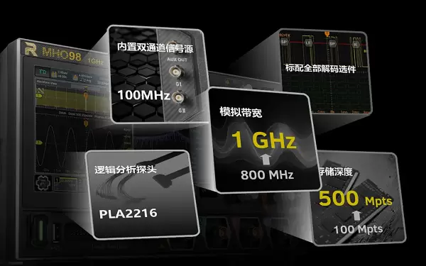 ·带宽升级至1GHz:模拟带宽从标准版最高800MHz提升至1GHz,轻松应对更高频率的高速信号测试需求;