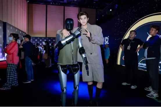 进入展厅,远征A2如普通观众般穿行于各个展台间,不时驻足仔细欣赏华美的服饰展品,还主动与路人握手互动,引得达人们争相与其合照打卡。当它踏上红毯时,酷帅的姿势更引起媒体的重点关注,快门声此起彼伏,堪称当日最受欢迎的“硅基嘉宾”。