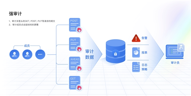 详细审计:操作记录及时上报服务器,关键操作制订告警策略。
