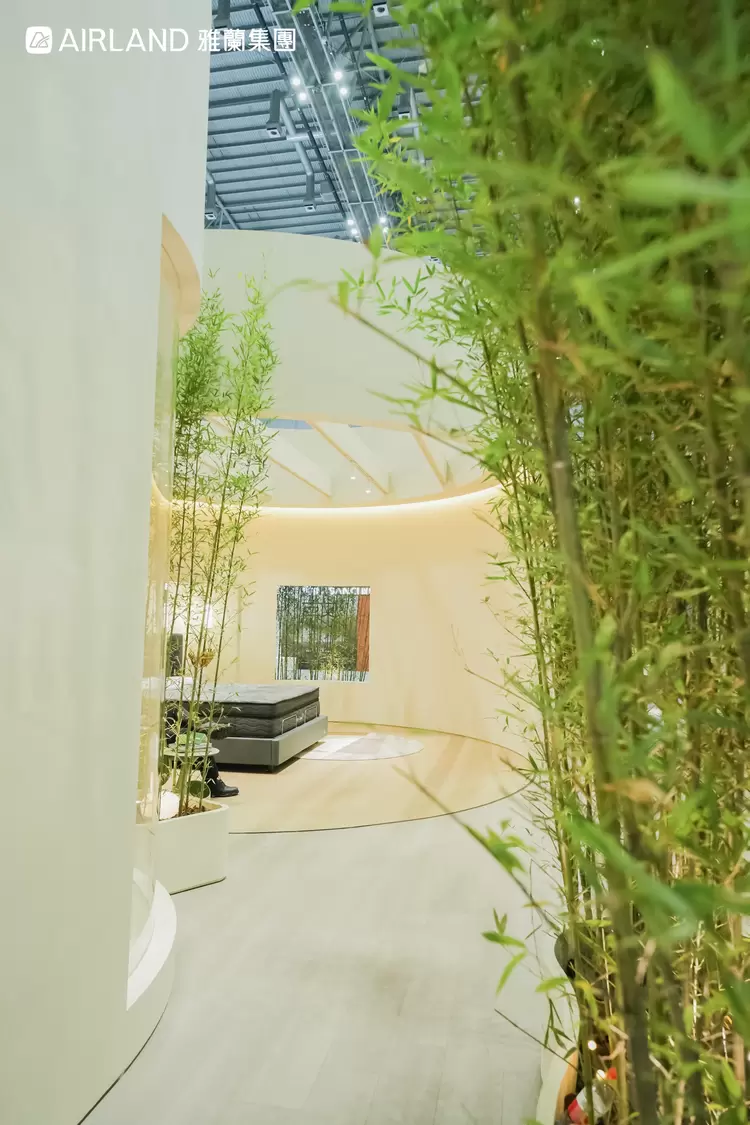 在本届展会数千个品牌中,雅兰精心打造的东方人文睡眠概念展馆,以其独树一帜的设计理念和沉浸式体验,成为当之无愧的“流量磁石”与打卡热点。展馆打破传统陈列模式,以“竹纳万象”为核心意象,将中国园林的“移步换景”与“五感疗愈”融入空间叙事,让观众在禅音、茶香与光影中,完成了一次身心同步的“深呼吸”。