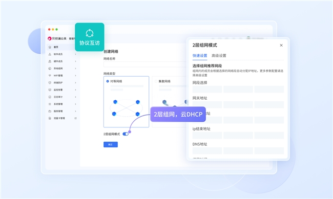 贝锐蒲公英优势二:自研二层组网技术,全面打通设备远程互联壁垒面对部分智慧停车场物联网设备厂商众多、协议不统一的问题,贝锐蒲公英区别于大多数网络方案,具备二层组网能力,支持数据链路层以上协议直接互通。