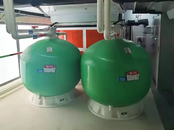 与循环水泵搭配的过滤砂缸,则具备耐高压、耐高温、耐化学腐蚀的卓越性能,可长期稳定运行于复杂水质环境。其内部特殊的滤料层级结构,能有效截留水中的悬浮杂质、微小颗粒等污染物,过滤精度可达微米级,确保出水清澈纯净,为后续水质杀菌处理奠定基础。