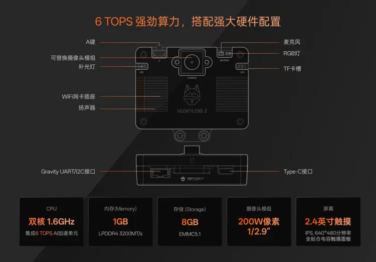 超强算力配置:集成6TOPS超高算力,使识别速度、精度与稳定性得到显著提升