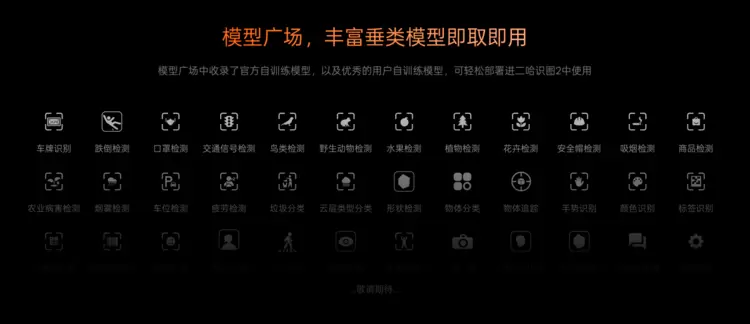 内置模型全面升级:在保留人脸识别、物体识别等经典功能基础上,新增手掌关键点识别、车牌识别、实例分割等实用模型,总计预置20余种AI模型,开机即用无需配置