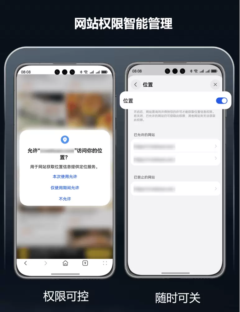 隐私安全的核心在于用户对自身信息的掌控权。华为浏览器打造网站级权限管理功能。从位置、麦克风到相机权限,每一个网页对权限的获取均需经过用户主动同意,充分尊重用户的知情权与选择权。