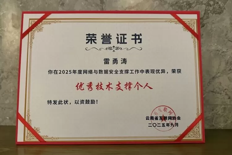 上午,在2025年国家网络安全宣传周电信日——云南省信息通信网络安全实网演练暨技能竞赛总结大会上,绿盟科技集团作为唯一受邀发言的安全厂商出席会议。会上,绿盟科技荣获“2025年度优秀技术支撑单位”称号。集团运营商事业部总经理汤旭、云南代表处首席代表姜艳杰受邀参会,安全专家雷勇涛荣获“优秀支撑个人”称号。